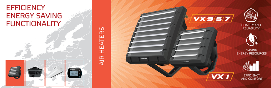 We offer special conditions for the entire products range TORNADO, which includes air heaters, heating and air curtains as well as control systems.